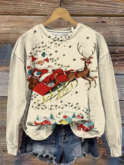 Vintage Christmas Santa Art Print Casual Sweatshirt