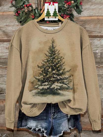Vintage Christmas Tree Art Print Casual Sweatshirt