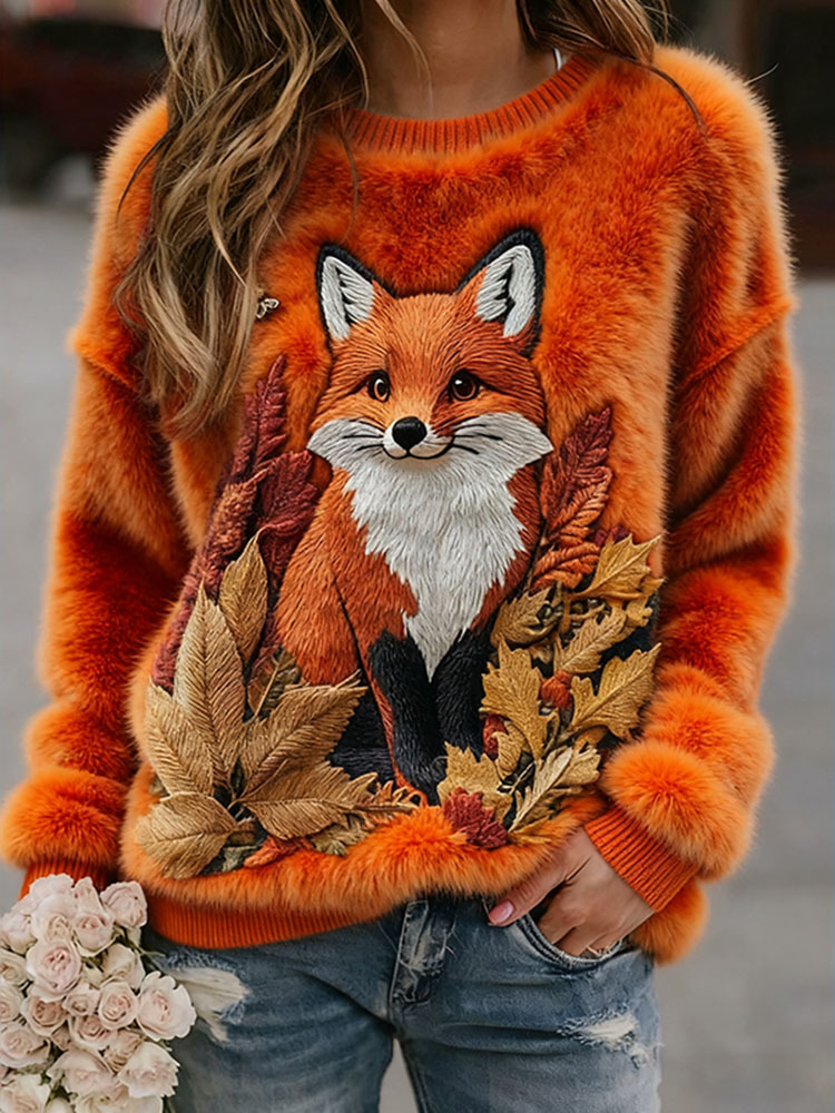 Vintage Fall Fox Autumn Art Women's Cozy Plush Sweater