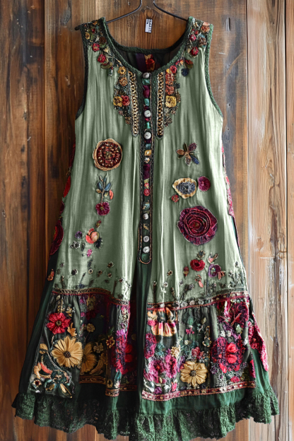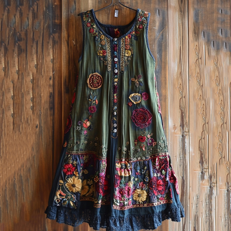 Vintage Floral Lace Patchwork Art Comfy Sleeveless Dress