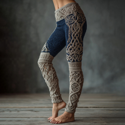 Vintage Viking Celtic Knit Art Knit Jacquard Cozy Leggings