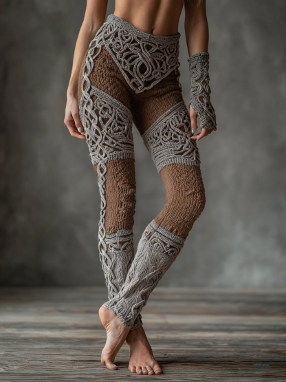 Vintage Viking Celtic Knot Art Knit Jacquard Cozy Leggings