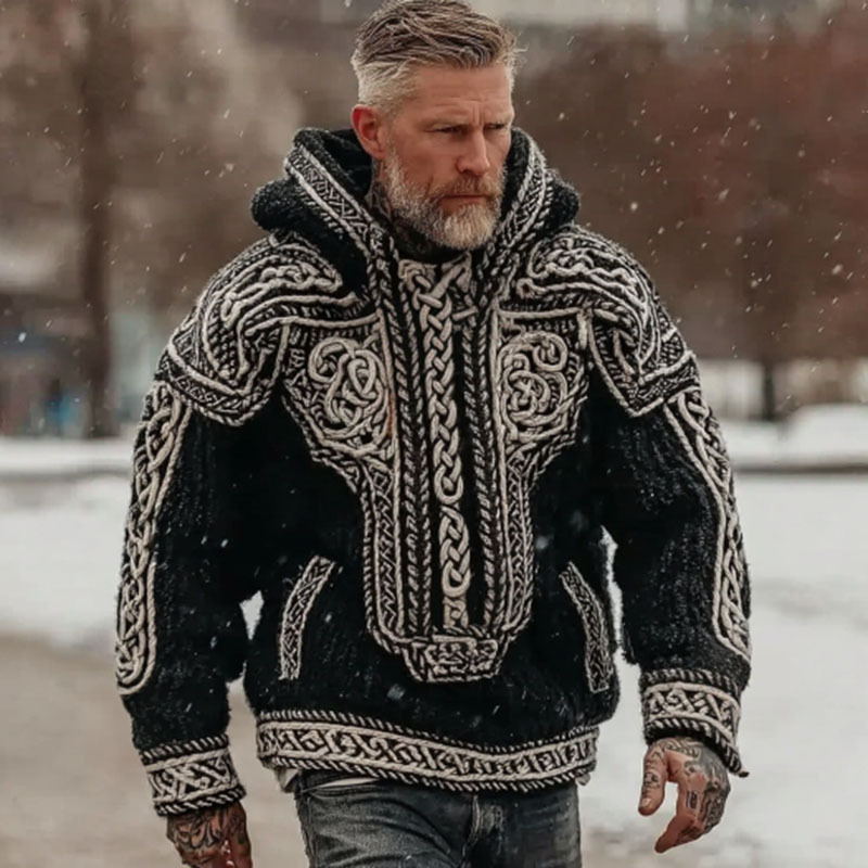 Vintage Viking Celtic Knot Art Knitted Hooded Sweater