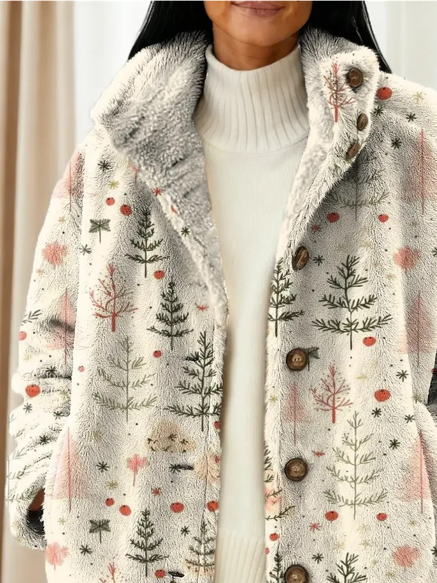 Women Winter Outerwear Vintage Christmas Long Sleeve Jacket