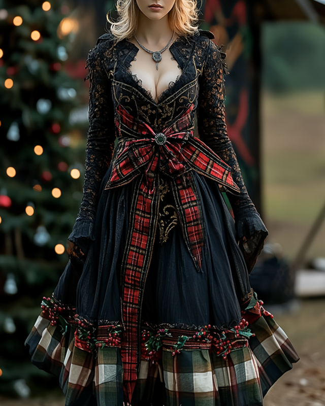 Women's Autumn and Winter Christmas Theme Embroidered Elegant Fashion Dress 5341