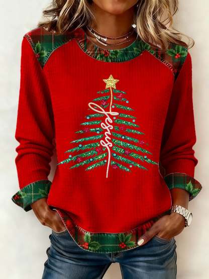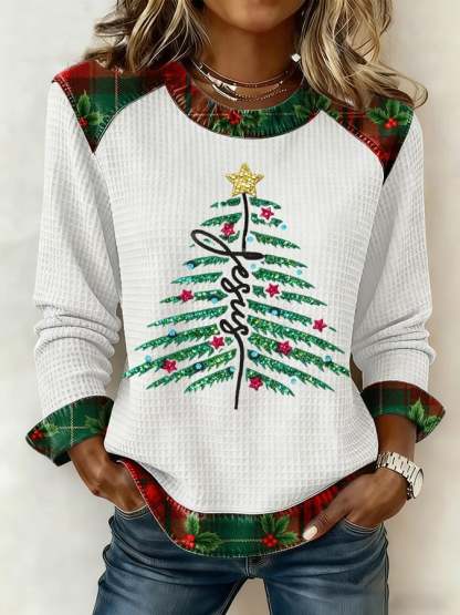 Women's Casual Christmas Faith Waffle Top