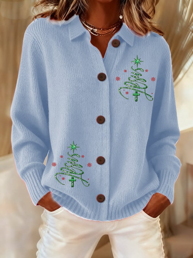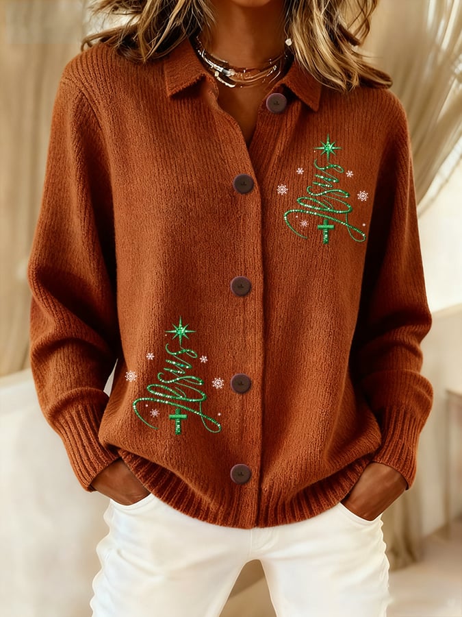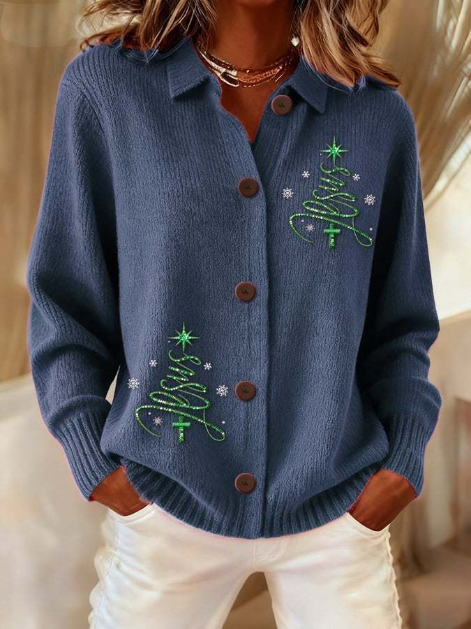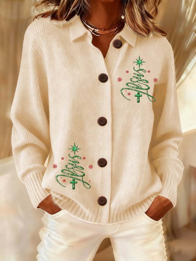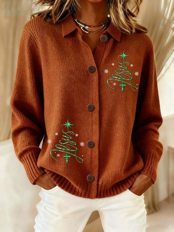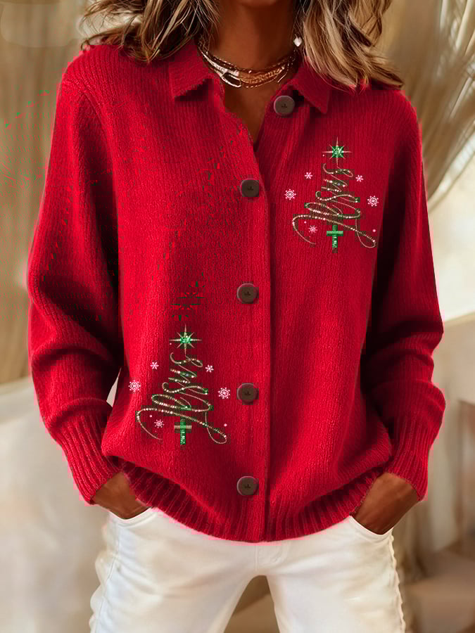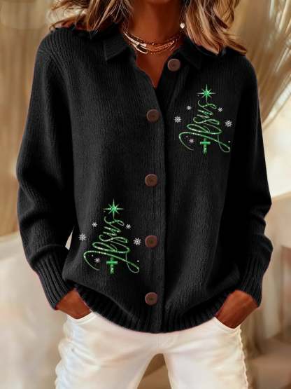 Women's Casual Christmas Jesus Knitted Cardigan