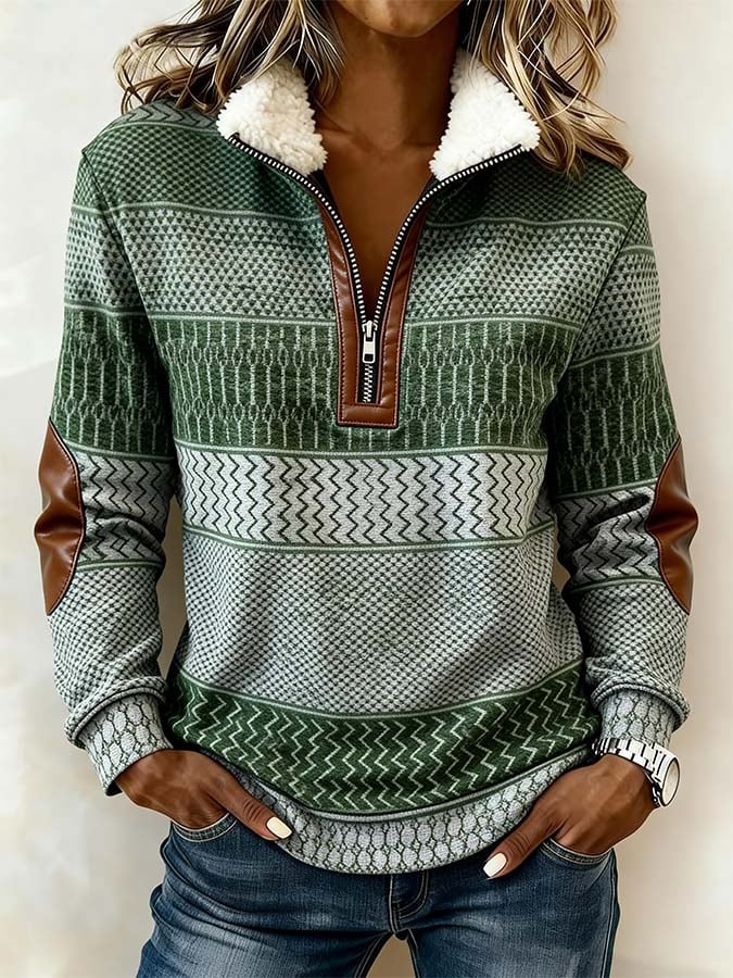 Women'S Casual Color Block Printed Pullover Sweatshirt