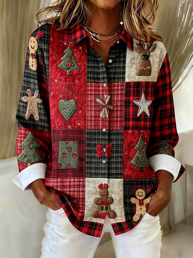 Women's Casual Plaid Print Lapel Long Sleeve Shirt