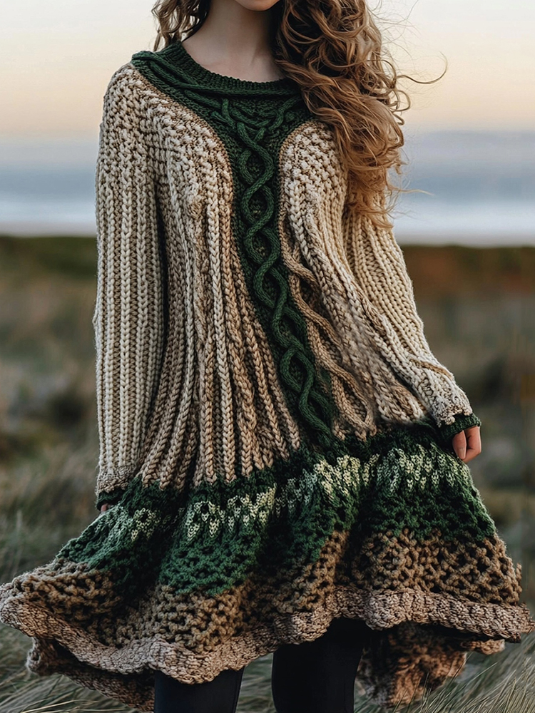 Women's Celtic Knot Jacquard Contrast Gradient Dress