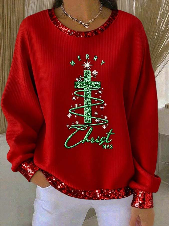 Women's Christmas Cross Print Casual Sweatshirt