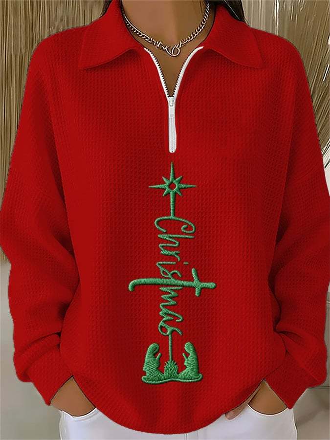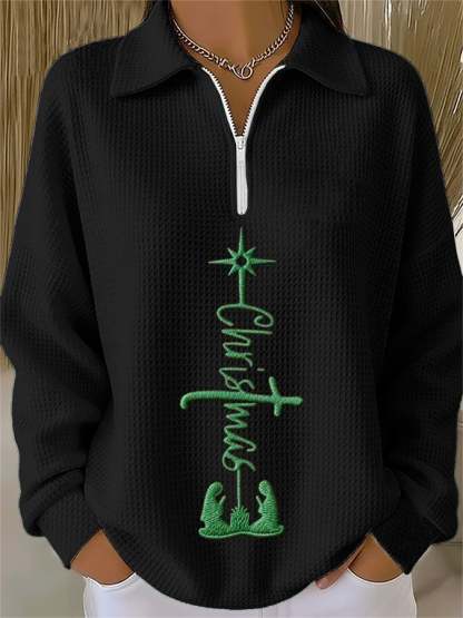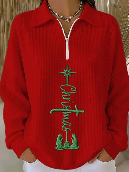 Women's Christmas Faith Print Waffle Chain Top