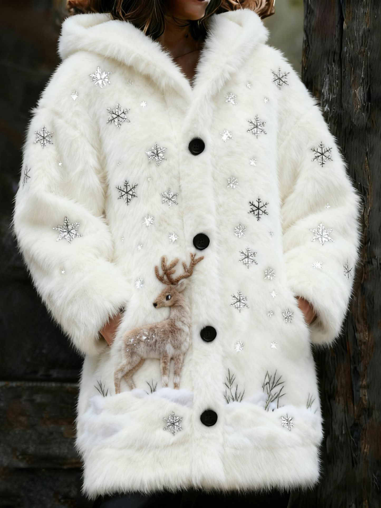 Women's Cute Elk In Snowflake Sequins Cozy Hooded Knit Cardigan