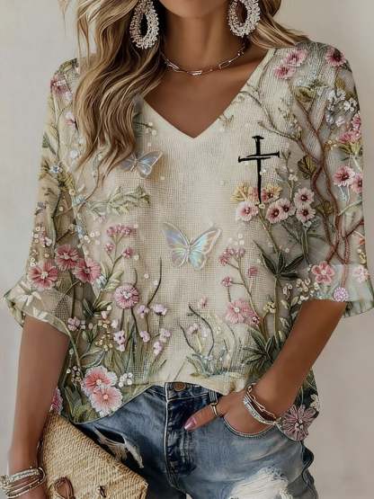 Women's Faith Floral Print Waffle Long Sleeve T-Shirt