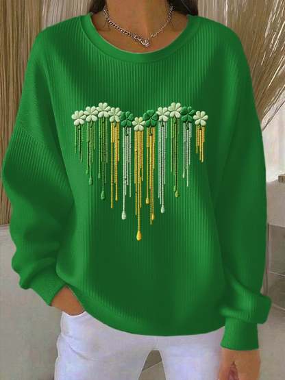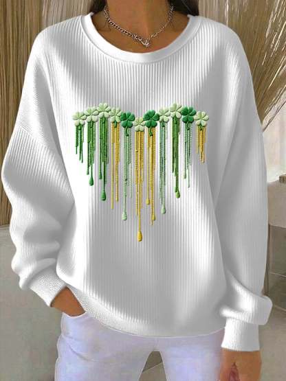Women's Heart Shamrock St Patrick's Day Printed Sweatshirt