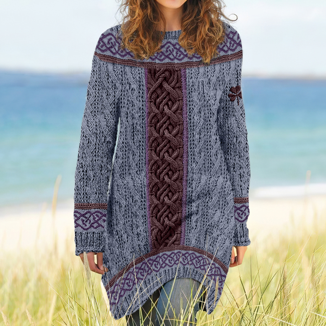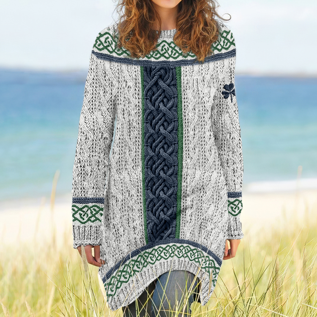 Women's Irish Celtic Knotted Shamrock Contrast Jacquard Sweater Dress