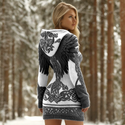 Women's Viking Angel Wings Celtic Knot Mini Hooded Sweater Dress