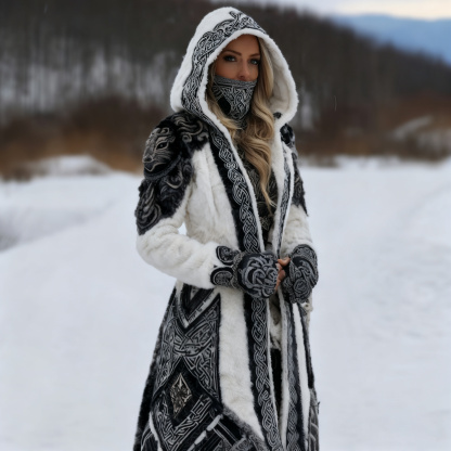 Women's Viking Celtic Knot Inspired Art Plush Warm Hooded Jacket