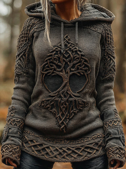 Women's Viking Celtic Knot Tree Of Life Knitted Warm Hooded Sweater