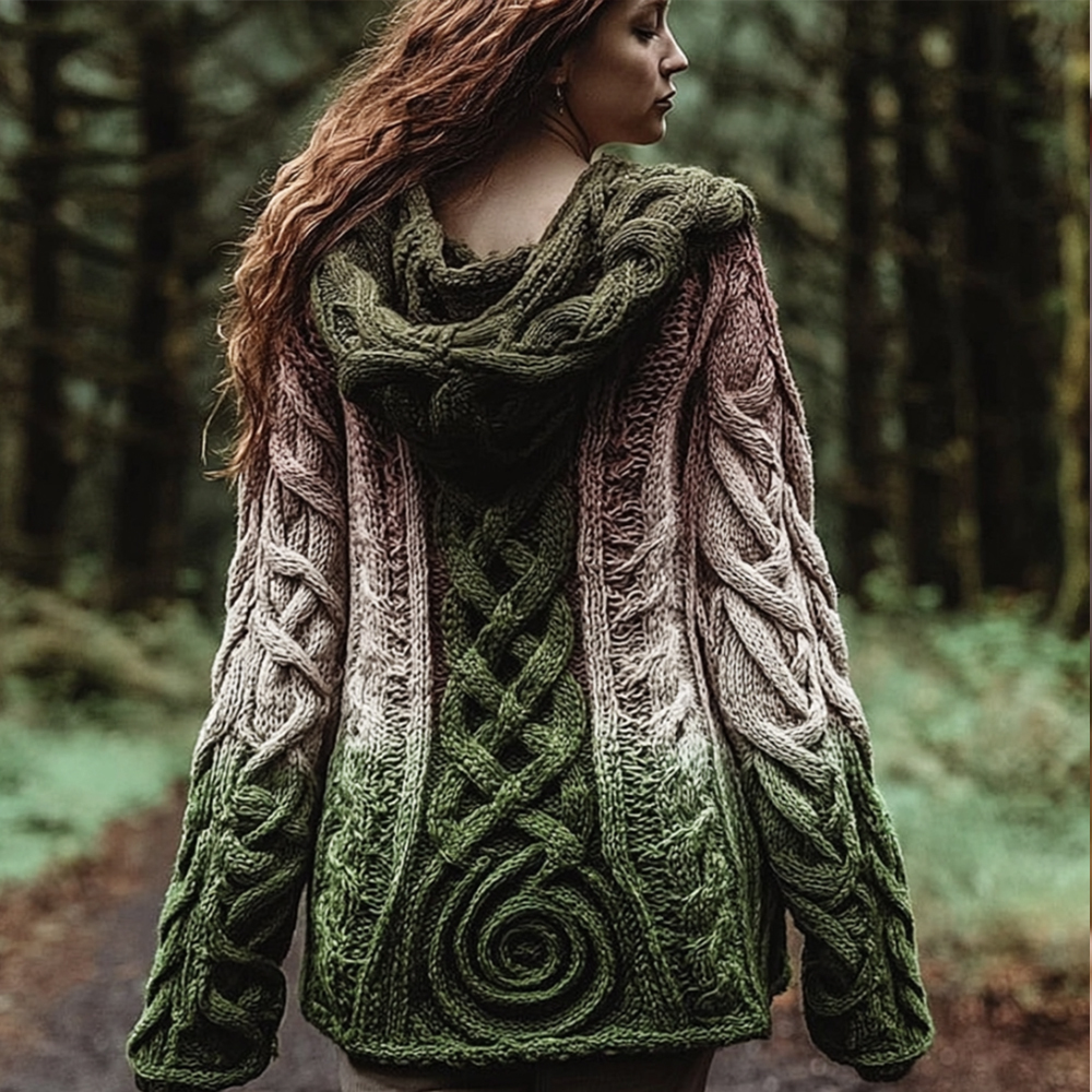 Women's Viking Retro Gradient Hooded Long-sleeved Sweater