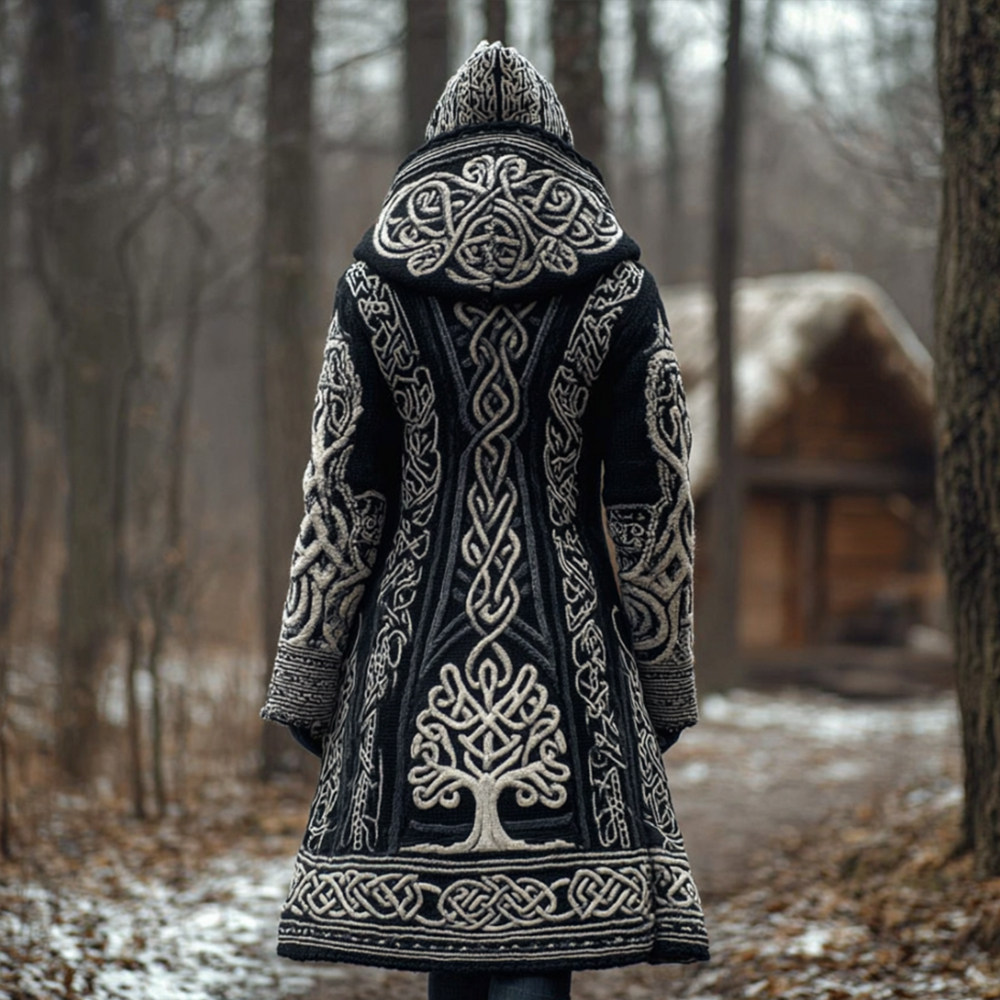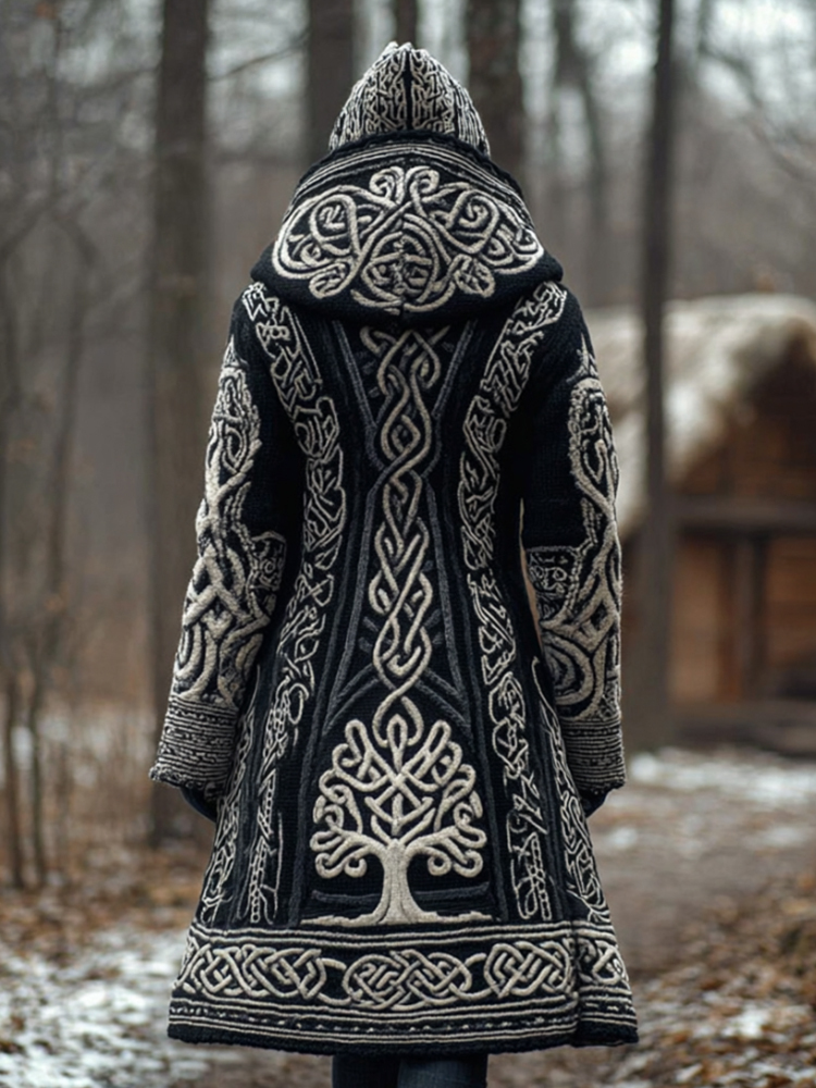 Women's Viking Style Celtic Tree Of Life Totem Thick Hooded Long Sweater