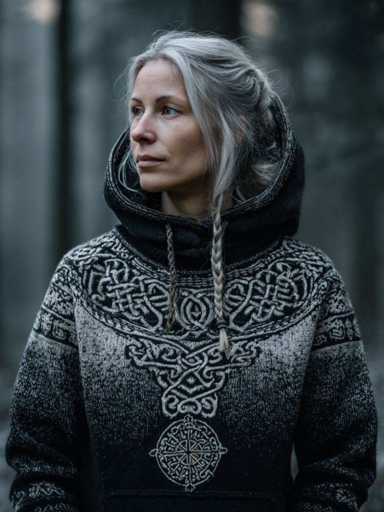 Women's Viking Style Viking Compass Gradient Hooded Sweater