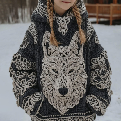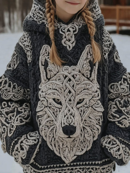 Women's Viking Wolf Pattern Art Knitted Cozy Hooded