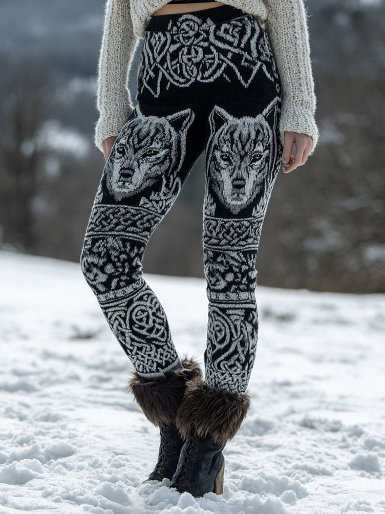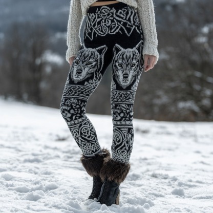 Women's Viking Wolf Pattern Thermal Leggings
