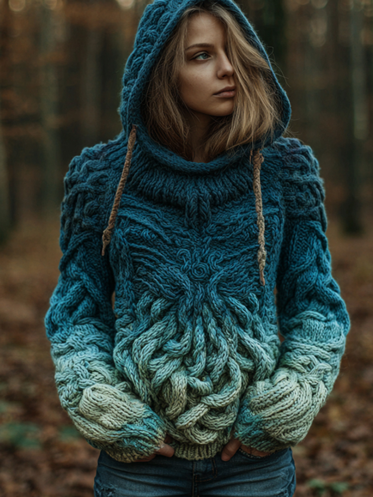 Women's Vintage Three-dimensional Gradient Octopus Hooded Sweater