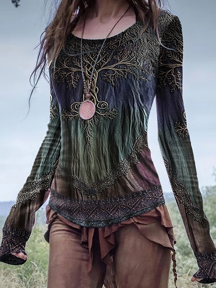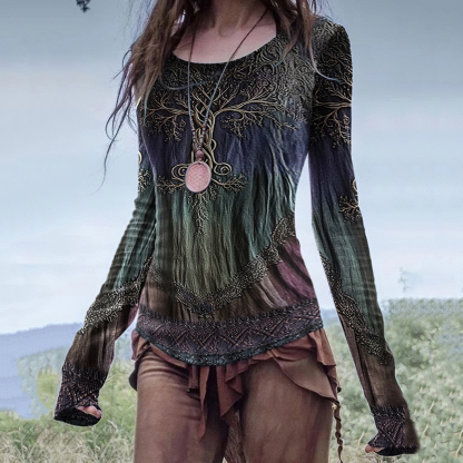 Women's Vintage Viking Tree Of Life Gradient Art T Shirt